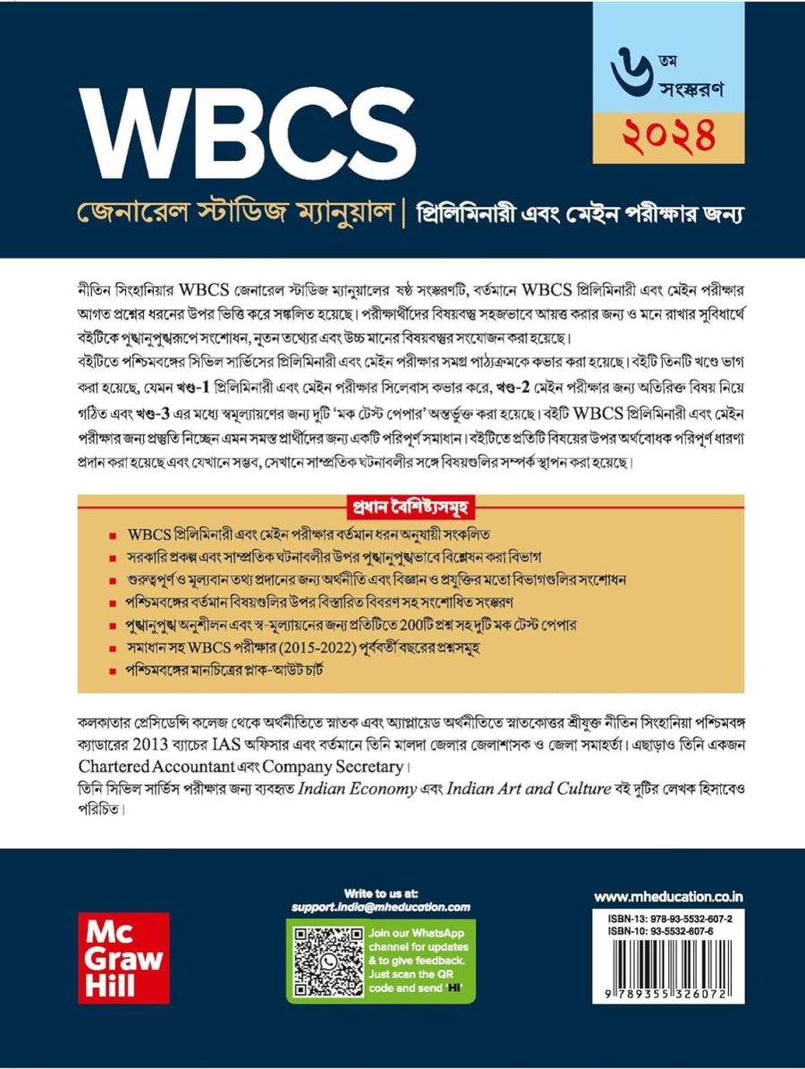 Publisher : McGraw Hill; Standard Edition (4 December 2023); McGraw Hill Education (India) Private Limited, Candor TechSpace, 8th Floor, Tower No 5, Plot No 2, Block B,Sector 62, Noida, Uttar Pradesh - 201309; 18001035875 Language : Bengali Paperback : 1144 pages ISBN-10 : 9355326092 ISBN-13 : 978-9355326096